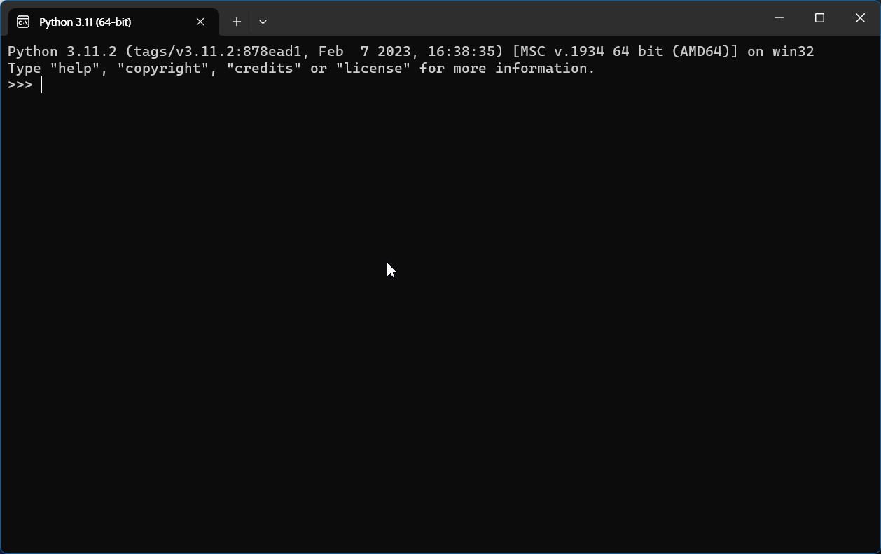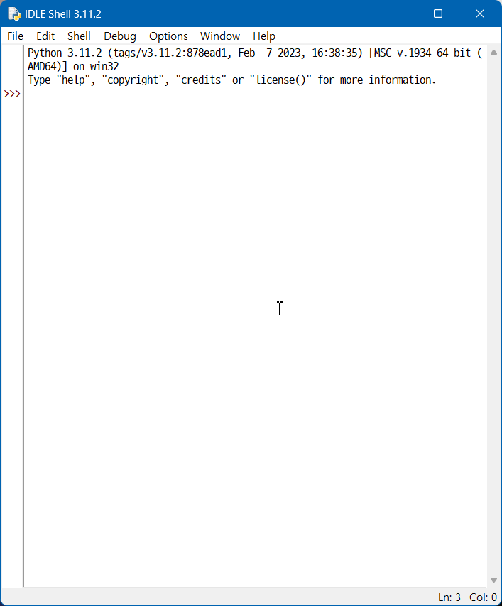 네번째의 IDLE (Python 3.11 64-bit)는 Python IDLE Shell 을 띄운다. 나는 IDLE Shell을 사용할 것이다.