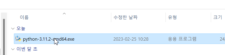 - 윈도우즈 버전 다운로드 하기 (Python 3.11.2 버전)
